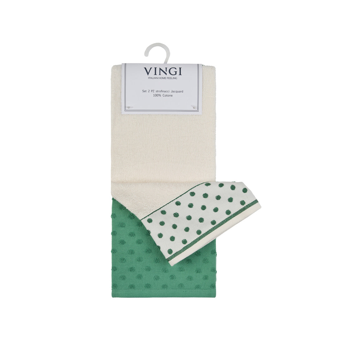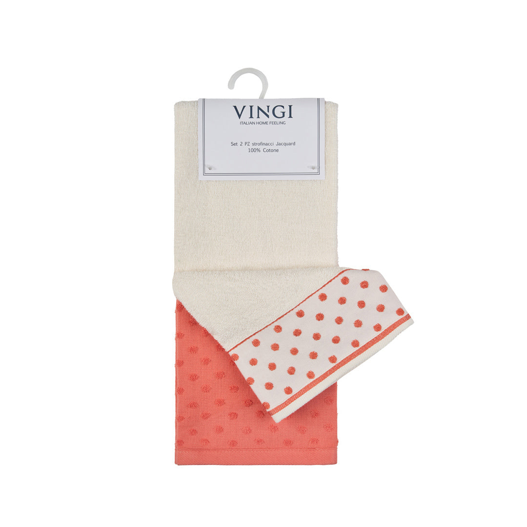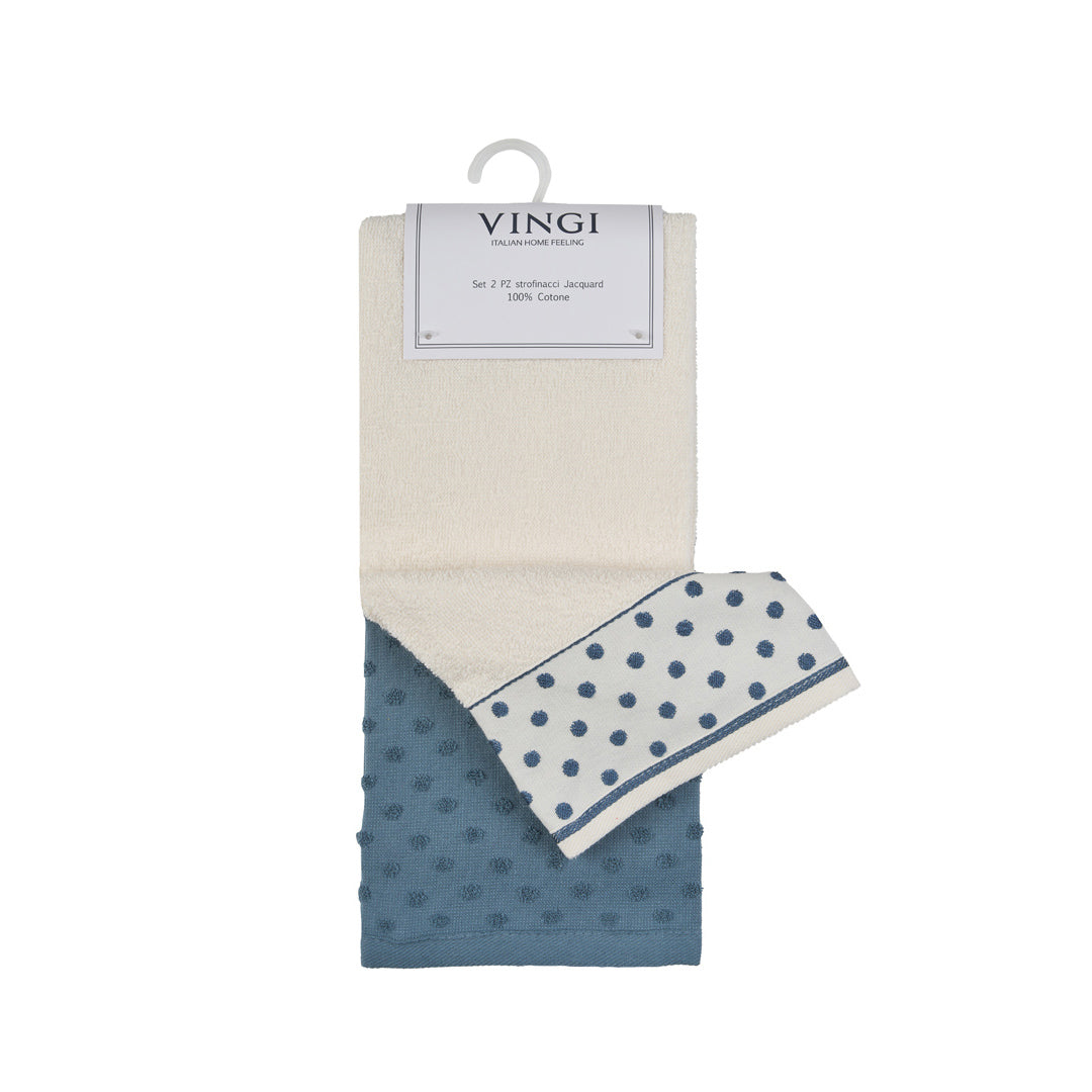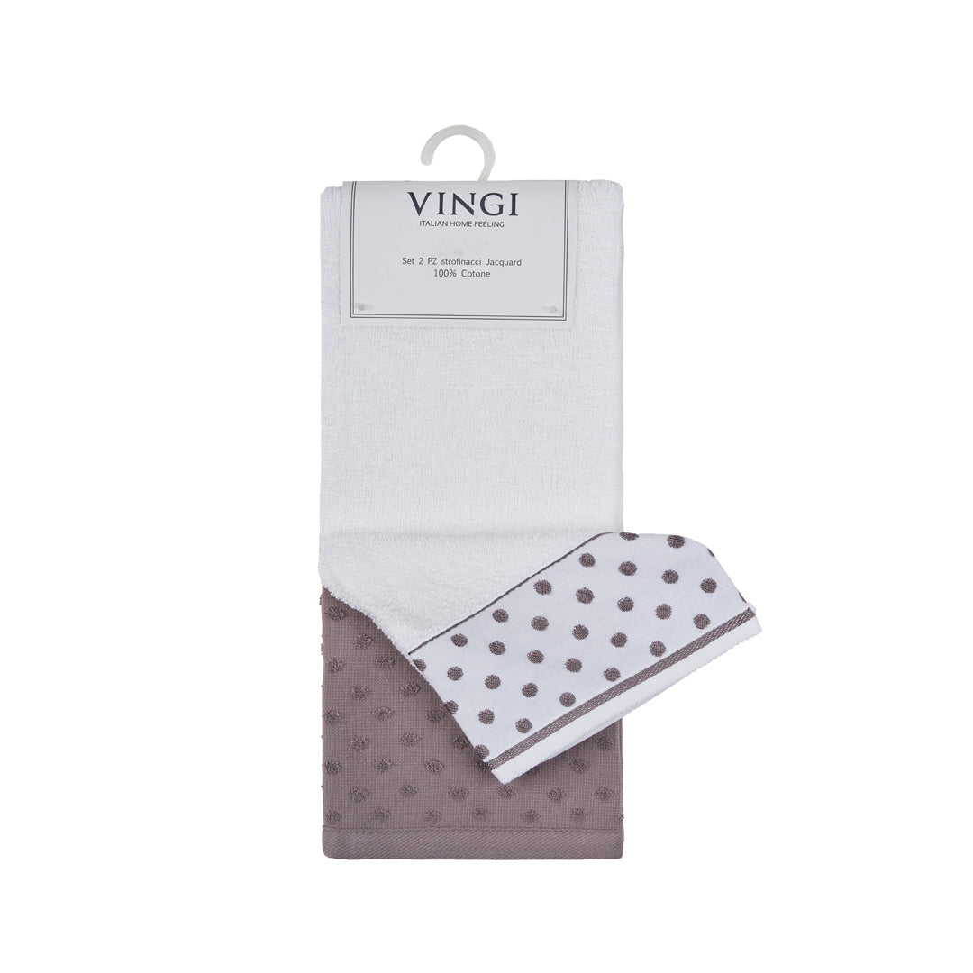 Nuova collezione, eleganza infinita. Il set di 2 strofinacci Infinito è realizzato in cotone Jacquard, con un design a pois unico e moderno. Ideale per l'asciugatura delle mani o come tovaglia per la tua tavola. Lussuoso e pratico, con appendino per un facile utilizzo. Soluzione perfetta per la tua cucina di classe.