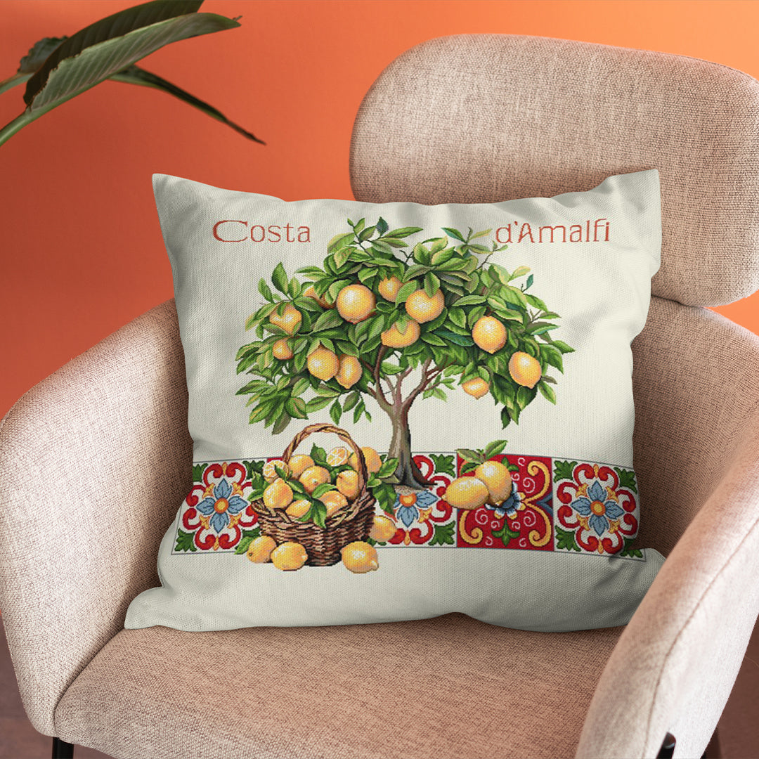 Rinnova la tua casa con il cuscino Costa D'Amalfi 1. Realizzato in morbido cotone, ha una stampa digitale che riporta paesaggi mozzafiato della Costa Amalfitana. Aggiungi un tocco di lusso alla tua casa e immergiti in un'atmosfera esclusiva con questo cuscino misura 45x45.