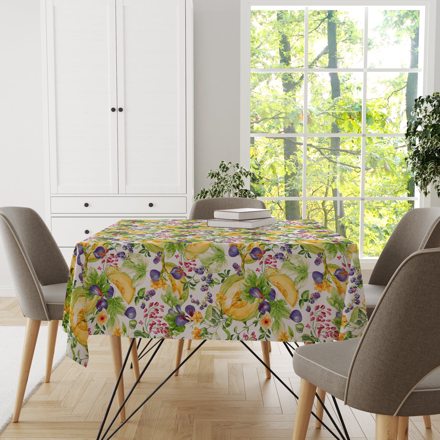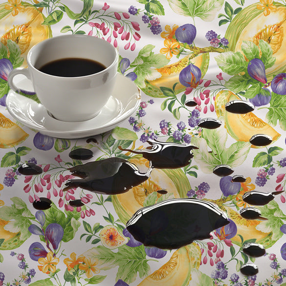 Tovaglia Meloni e Fichi in tessuto antimacchia, perfetta per tavoli eleganti che richiedono praticità senza compromessi. La superficie trattata respinge liquidi e macchie, mantenendo l'aspetto impeccabile anche dopo cene importanti. Design raffinato con motivi di meloni e fichi che aggiungono un tocco di sofisticazione alla tua tavola. Facile da pulire e resistente nel tempo, ideale per chi apprezza bellezza e funzionalità.