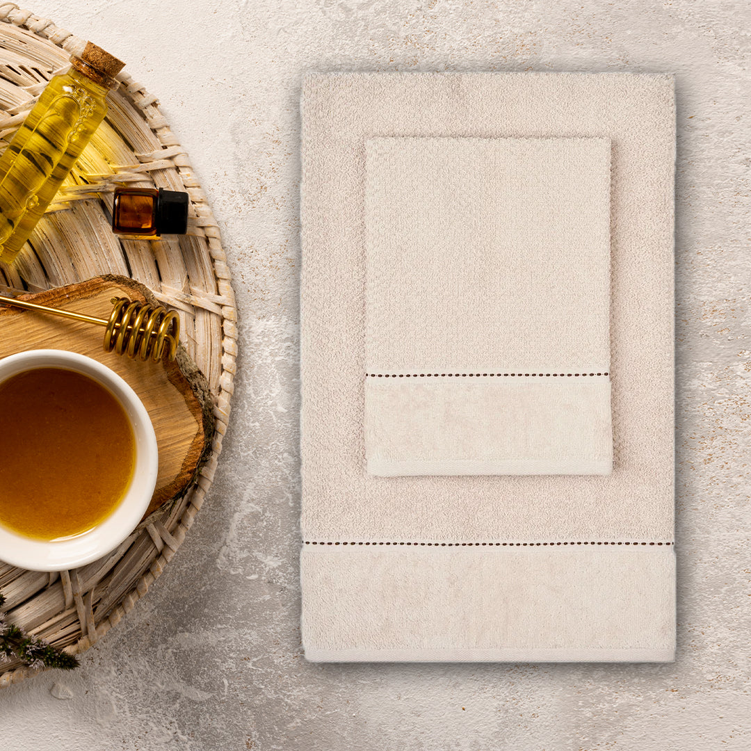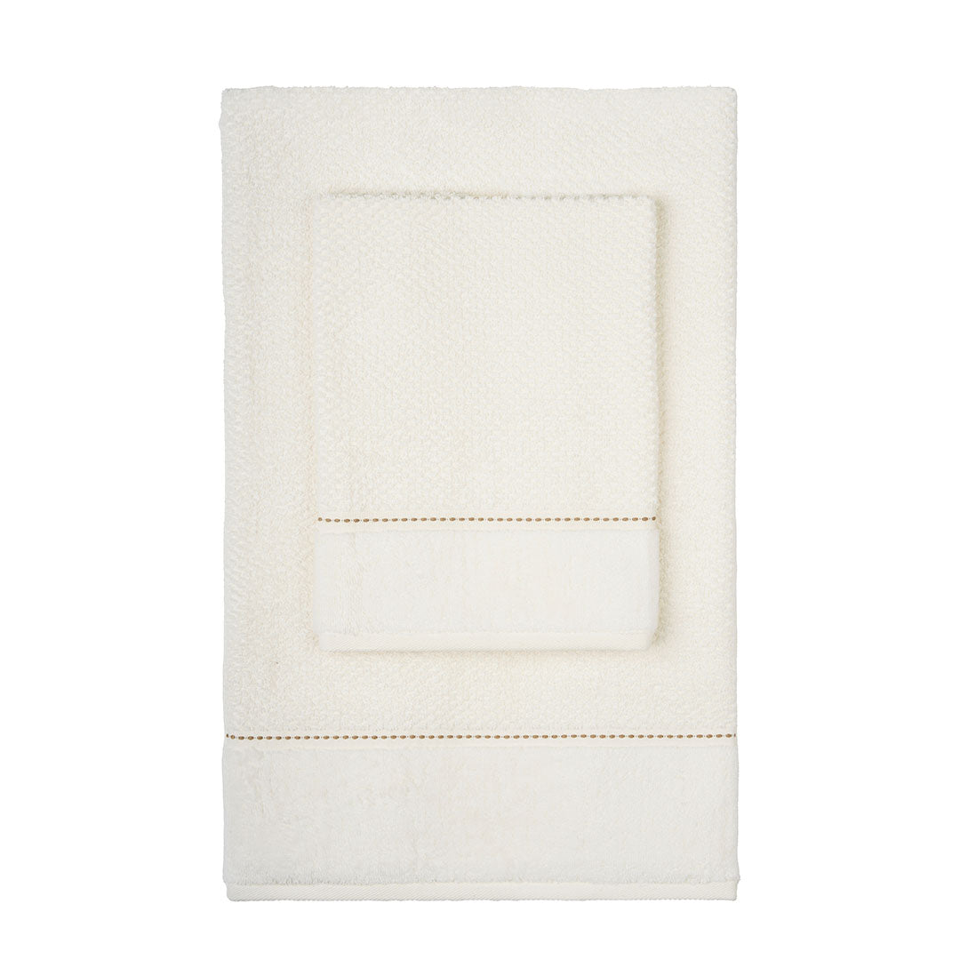 Set coordinato di asciugamani in pregiata spugna, formato da un pezzo grande e uno ospite di dimensioni ridotte. Presentati in elegante confezione regalo con fiocco, ideali per chi apprezza i dettagli raffinati. La spugna morbida e altamente assorbente assicura praticità e longevità, rendendoli perfetti sia per l'uso quotidiano che come dono esclusivo per momenti importanti.