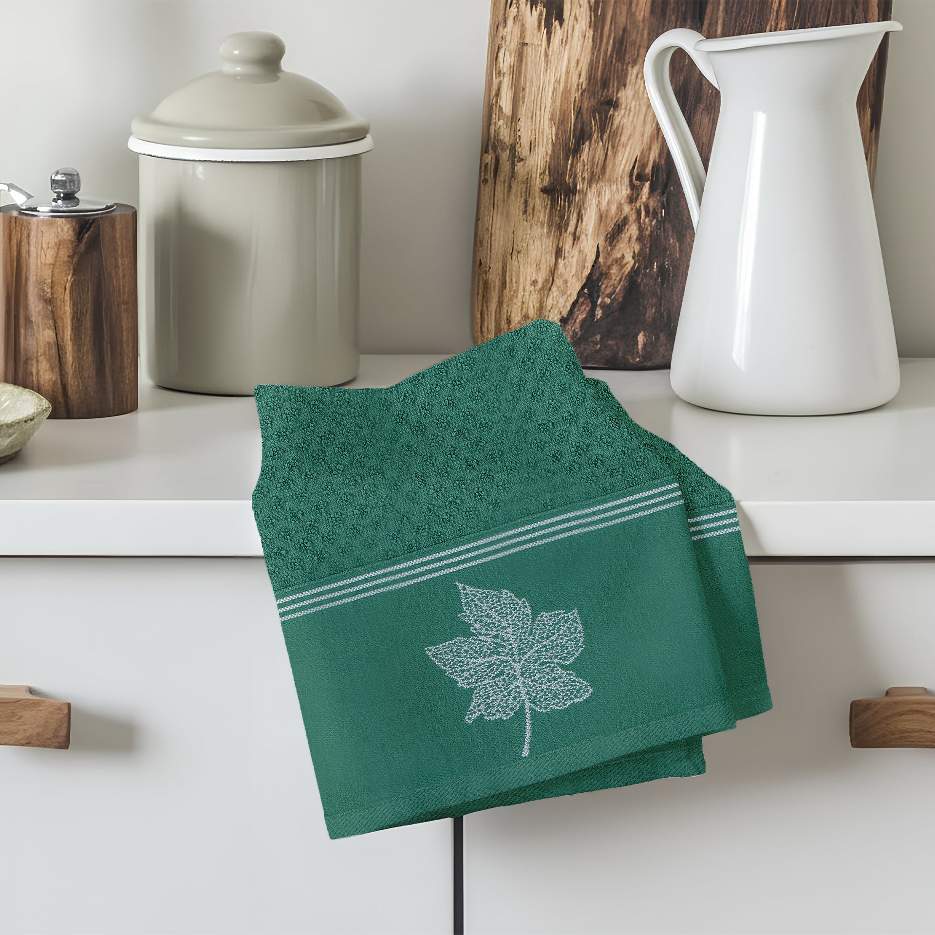 Esalta la tua cucina con l'eleganza di questo set di 2 strofinacci Melissa in cotone jacquard ricamato. Ogni pezzo è dotato di un appendino per un'organizzazione senza sforzo. Sentiti lusso ogni volta che asciuga le tue mani o pulisce i tuoi piatti con questi strofinacci esclusivi.