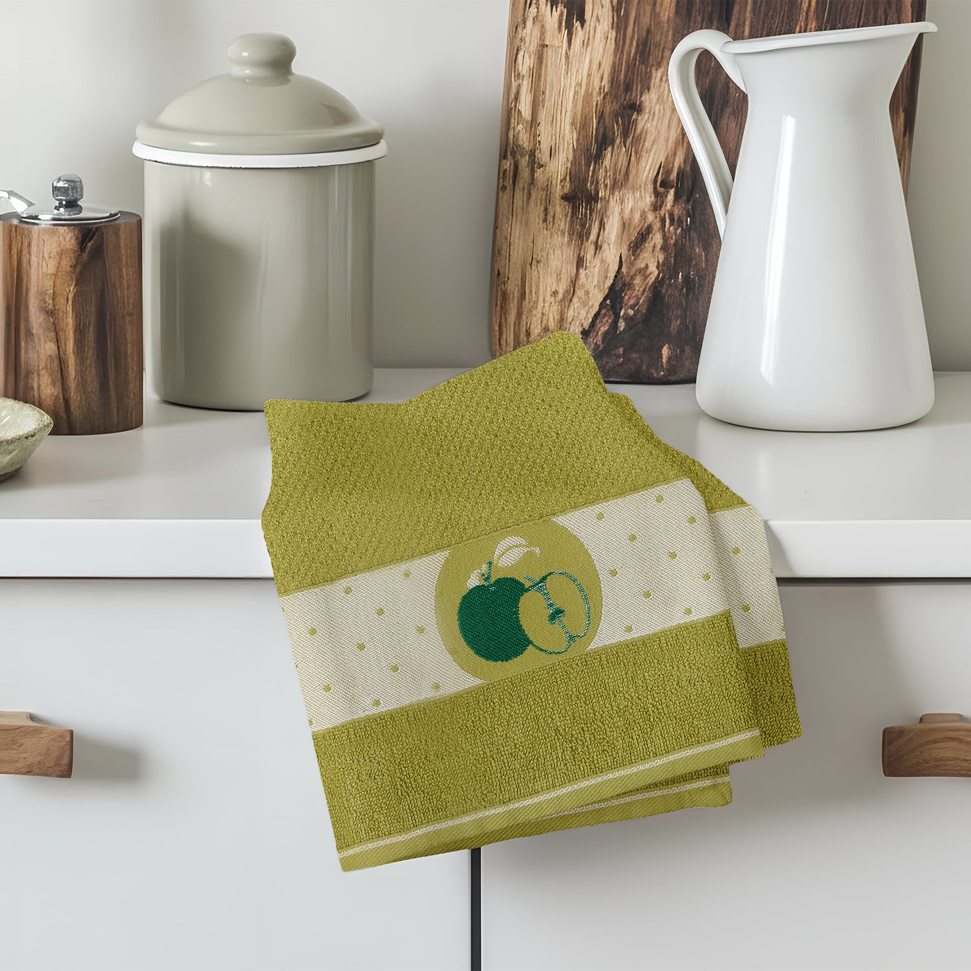 Esalta la tua cucina con l'eleganza di questo set di 2 strofinacci Procida in cotone jacquard ricamato. Ogni pezzo è dotato di un appendino per un'organizzazione senza sforzo. Sentiti lusso ogni volta che asciuga le tue mani o pulisce i tuoi piatti con questi strofinacci esclusivi.
